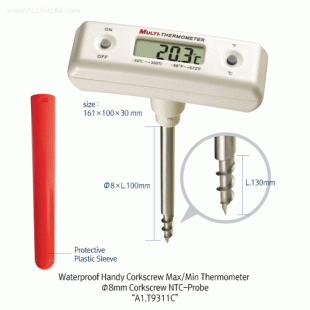 Soporte abatible, carcasa de PVC, sonda de perlas tipo K de 4 pies, baterías, certificado Traceable®