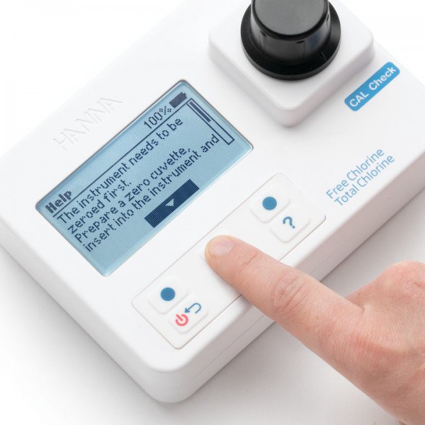 - Función CAL Check: Permite la verificación y la calibración del medidor utilizando los patrones trazables a NIST. Nuestros viales estándar CAL Check están desarrollados para simular un valor de absorbancia específico en cada longitud de onda para verificar la precisión de las lecturas posteriores. La pantalla CAL Check guía al usuario paso a paso a través del proceso de validación y la calibración (si es necesaria).