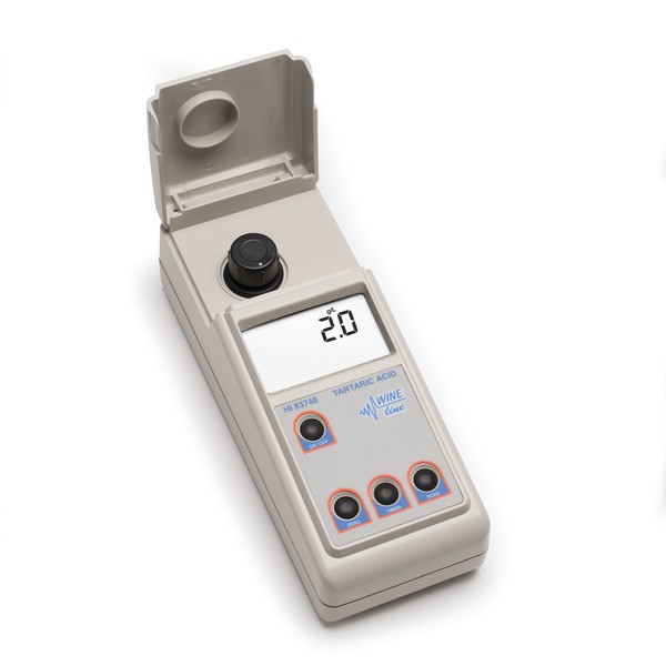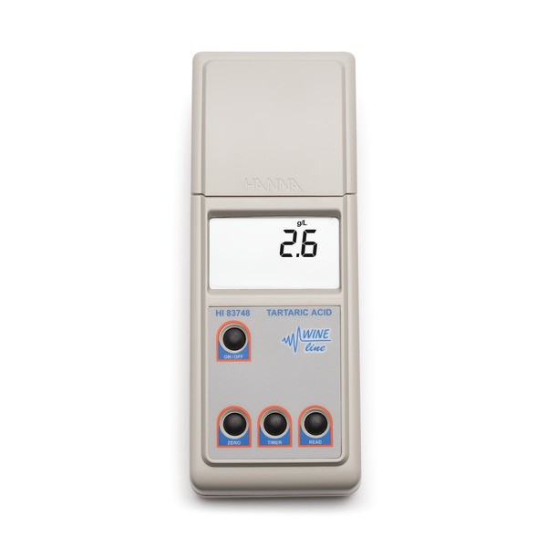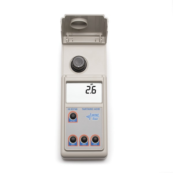 - El fotómetro HI83748 es utilizado para la determinación del ácido tartárico en el vino. Los fotómetros de Hanna cuentan con un sistema óptico avanzado, la combinación de una lámpara de tungsteno especial, un filtro de interferencia de banda estrecha y un fotodetector de silicio asegura lecturas fotométricas precisas en todo momento. El exclusivo sistema de bloqueo de cubetas garantiza que la cubeta se inserte en la celda de medición en la misma posición cada vez para mantener una longitud de trayectoria uniforme.