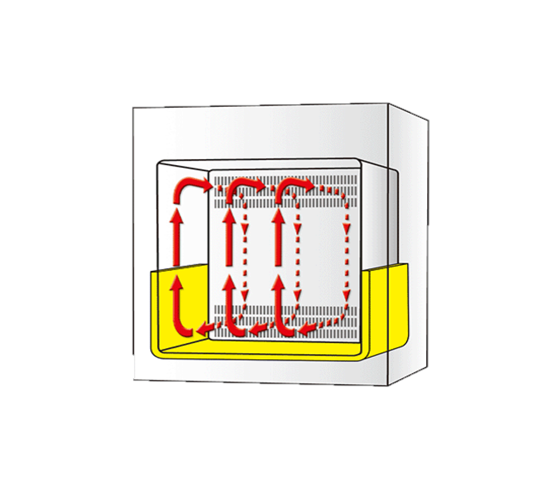 - Flujo de aire optimizado por mecanismo de aire forzado.