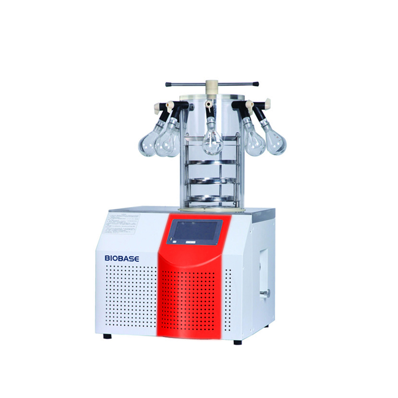 Bomba de vacío 2L/S, 8m³/h, bandeja de material, estante de material, cubierta de PC (para todos los modelos), Matraz de boca cónica de 500 ml*8 piezas, válvula de conmutación*8 piezas (solo para el modelo BK-FD10P/PT) |