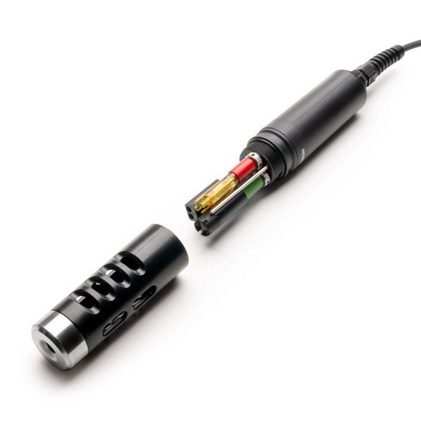 - Sonda digital con sensor de temperatura incorporado y tres puertos para sensores de pH (ORP), CE y OD óptico.