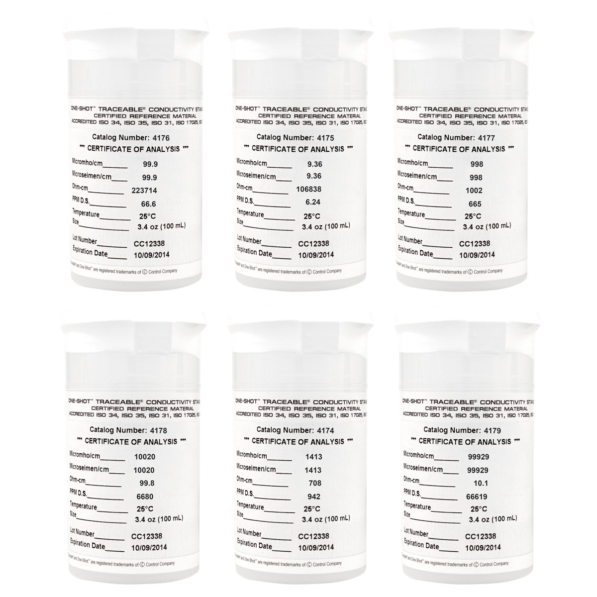 Estándares de conductividad Traceable®, Material de referencia certificado Acreditado Guía ISO 34 (1750.02), Guía ISO 35, Guía ISO 31, ISO/IEC 17025:2017 (1750.01)