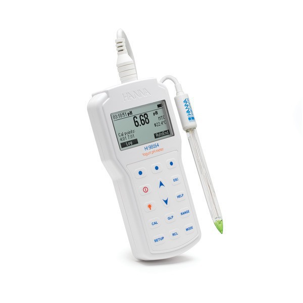 - Además tiene un electrodo de pH único hecho para yogur, el HI98164 tiene la función exclusiva de CAL Check ™ de Hanna que alerta al usuario de posibles problemas durante el proceso de calibración. Esto es muy importante para el procesador de alimentos ya que es probable que la sonda se recubra con los sólidos que se encuentran en el producto alimenticio que se está midiendo. Este puede ser un error en la medición del pH.