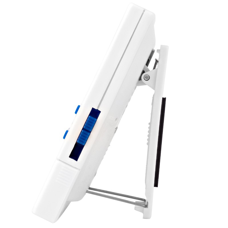 - En el modo reloj, anuncia la hora del día. Compra varias unidades; cada uno puede configurarse con un sonido de alarma diferente.