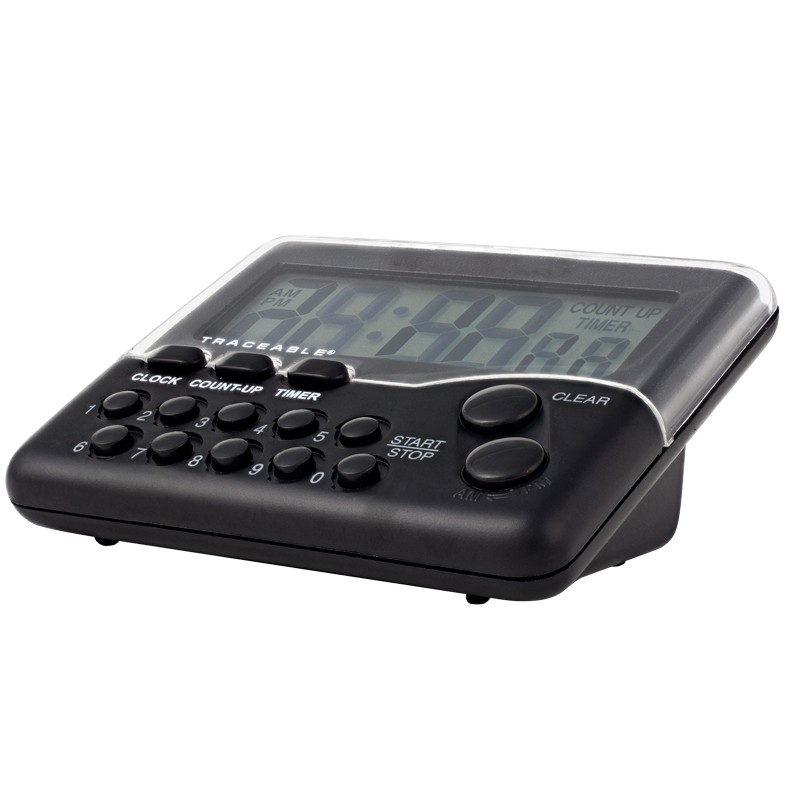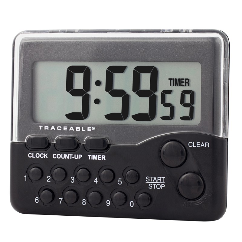 - Cuenta regresiva o ascendente hasta 9 horas, 59 minutos, 59 segundos con una precisión de 0.01%. Insertar el tiempo deseado es increíblemente fácil con teclas numeradas individualmente.