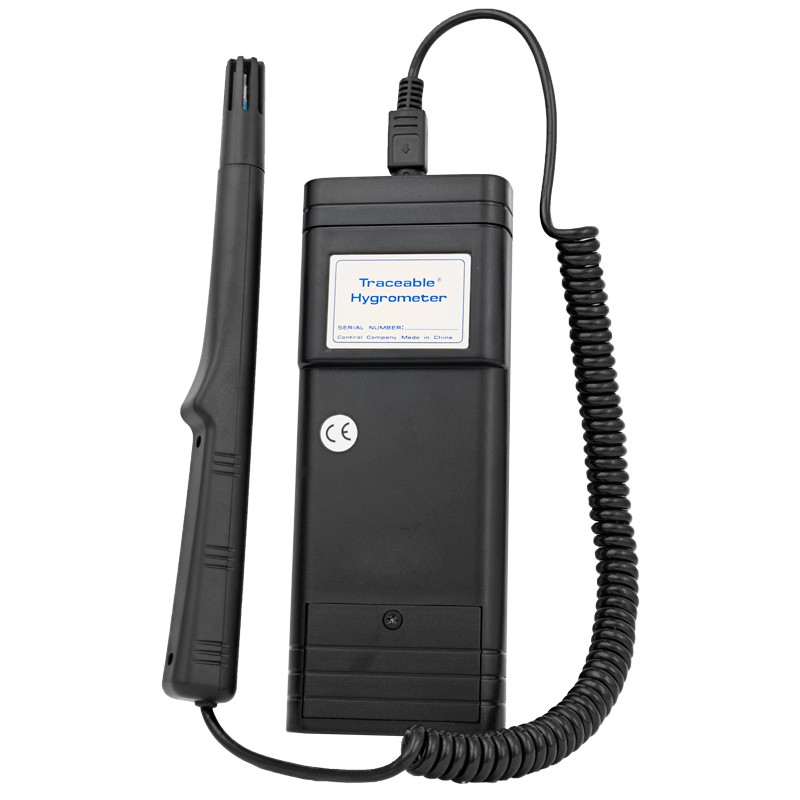 - El higrómetro/termómetro con memoria Traceable ® mide del 10,0 al 95,0 % de humedad relativa y la temperatura de –20 a 50 °C (–20 a 122 °F).