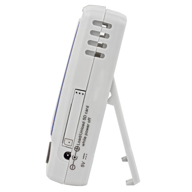- Registra lecturas desde una vez por minuto hasta una vez cada 720 minutos en una tarjeta de memoria SD estándar extraíble, idéntica a los tipos de cámaras digitales.