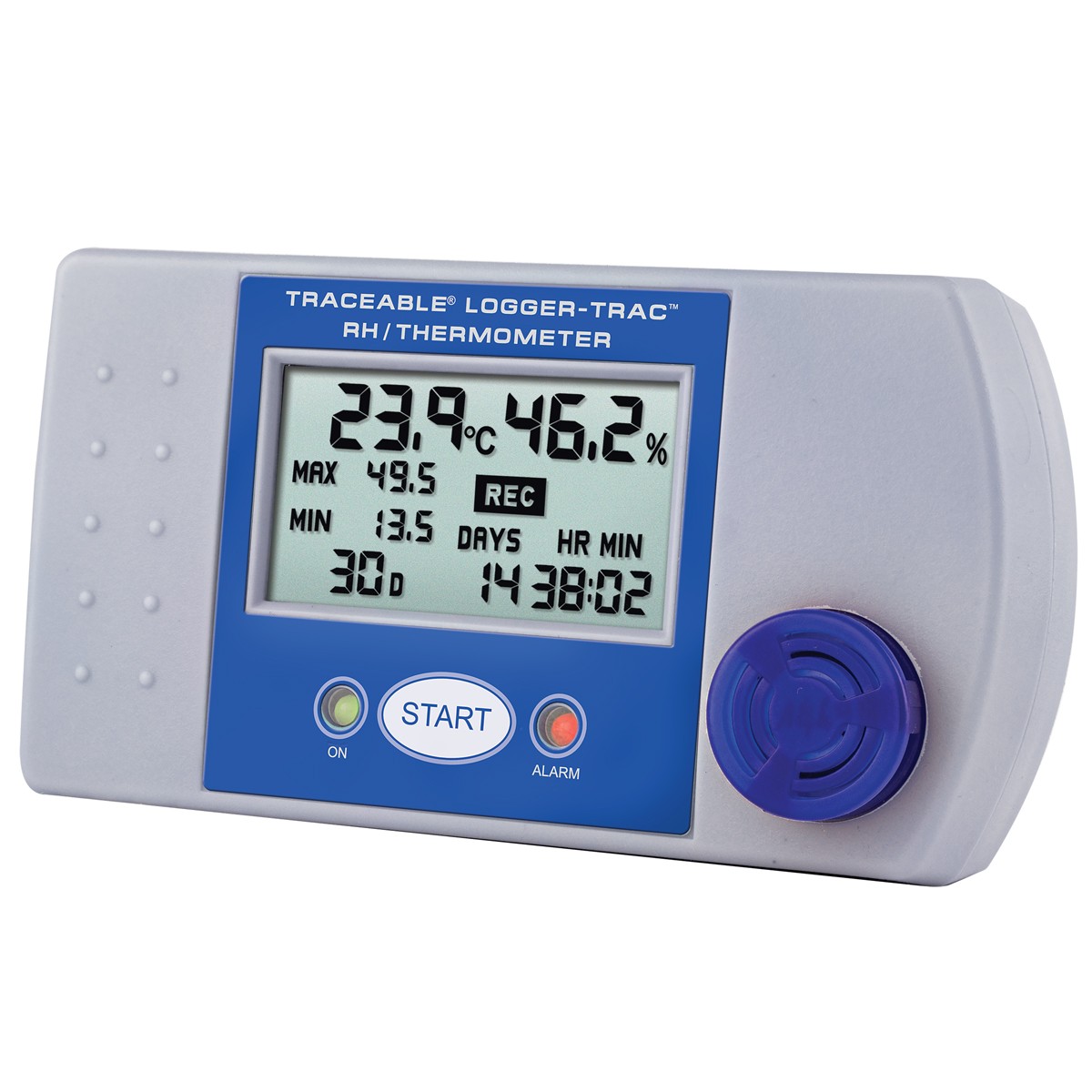 - El temporizador de duración acumulativa de la alarma se inicia cada vez que la lectura de humedad y/o temperatura está fuera de los parámetros aceptables, lo que proporciona un tiempo de excursión total desde el inicio de la grabación.