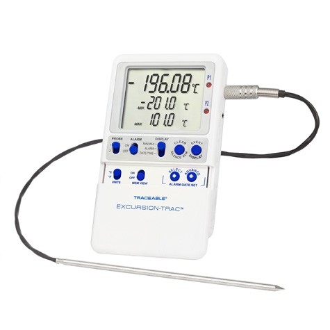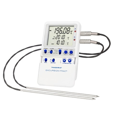 - El termómetro de alta precisión tiene un rango de temperatura de –200 a 105 °C y una resolución de 0,01 y mantiene una precisión de ±0,25 °C en todo el rango de temperatura.