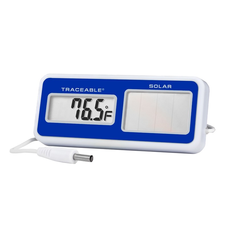 - El termómetro está siempre encendido y funciona durante años alimentado por la luz del laboratorio o la planta.