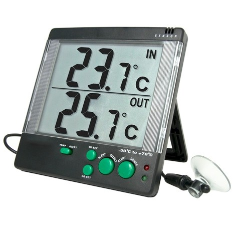 - El termómetro tiene 4 configuraciones de alarmas únicas: la alarma se activa cuando la temperatura es más alta que el punto establecido, más baja que el punto establecido, fuera de los puntos establecidos altos o bajos o dentro de los puntos establecidos más altos y bajos, lo que permite un control preciso de cualquier aparato o experimento.