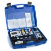 – El maletín HS94101M se suministra con turbidímetro portátil (0,00 a 1000 FTU) (HI93703), 2 cubetas de medición con tapa, patrones de calibración de 0 y 10 NTU (30ml) y fotómetro multiparamétrico portátil (Cloro Libre y Total/Bromo/pH/Ácido Cianúrico/Hierro/Iodo) (HI97101C), con cubetas de medición con tapa, reactivo líquido para 100 test de Cloro Libre, 100 test de Cloro Total, 100 test de pH, 10 de bromo y 10 de Ácido Cianúrico, paño limpieza, cubetas, tijeras, pilas e instrucciones. (NO incluye patrones de calibración).