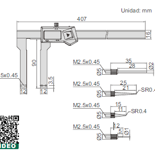 - Botones: on/off, zero, mm/inch.