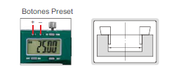 - Botones: on/off, set, mm/inch, preset (+, -).