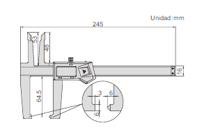 - Botones: on/off, set, mm/inch, ABS, preset (+, -).
