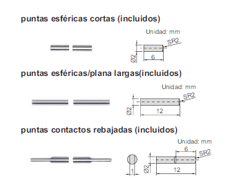 - Suministrado con 3 pares de puntos y bloque de ajuste cero para medición externa.